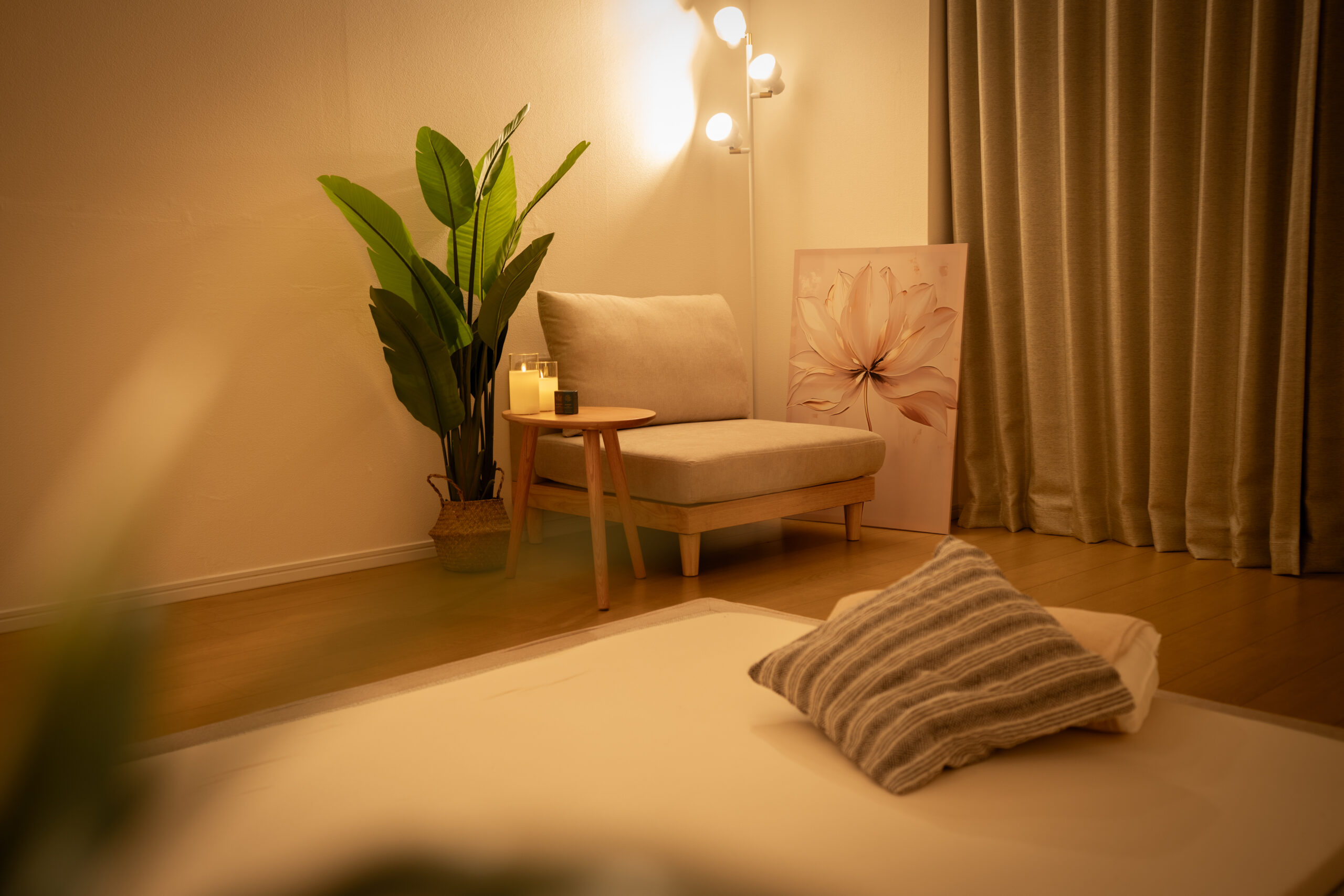 当店のセラピストは、全員が専門講師による技術研修を修了しています。施術前後の衛生管理、リネンの交換、香りや室温のバランスなど、すべてのお客様が快適に過ごせる空間づくりを心がけております。